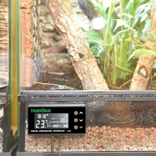 HabiStat Digital Temperature Thermostat features a continual readout of current temperature and time.